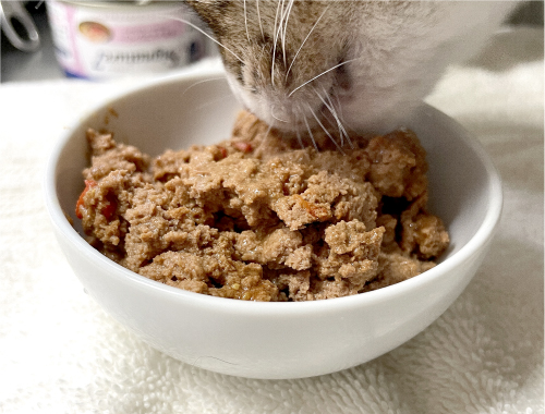 原材料  チキン、ツナ、乾燥クランベリー、ビタミンとミネラル(第三リン酸カルシウム、塩化カリウム、塩化ナトリウム、塩化コリン、硫酸マグネシウム、硫酸第一鉄、酸化亜鉛、α-トコフェロール、ナイアシン、酢酸レチノール、たんぱく質キレート銅、硫酸マンガン、チアミン硝酸塩、第二リン酸カルシウム、パントテン酸カルシウム、リボフラビン、ピリドキシン塩酸塩、ビオチン、ビタミンB12、亜セレン酸ナトリウム、コレカルシフェロール、葉酸、ヨウ化カリウム、酸化マグネシウム)、チキンレバー、グリシン、グアーガム、カラメル、まぐろエキス、タウリン