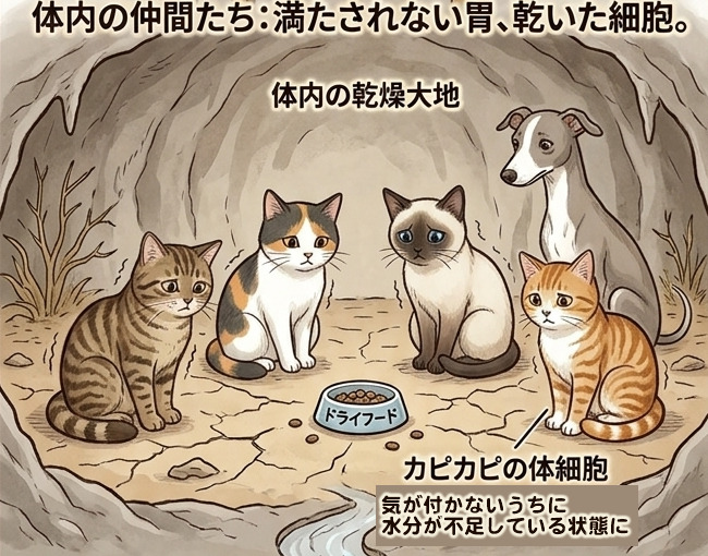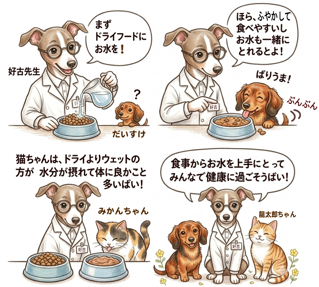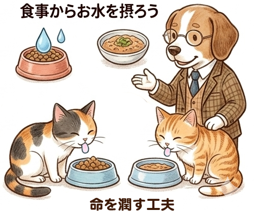 わたしたち人間もそうですが、犬さんも猫さんも「食事から水分をとる」ということが、とても大切な体のしくみになっています。