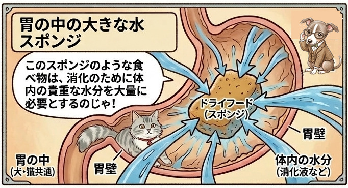 ドライフードがすごく水を吸うというお話を先ほどいたしました。